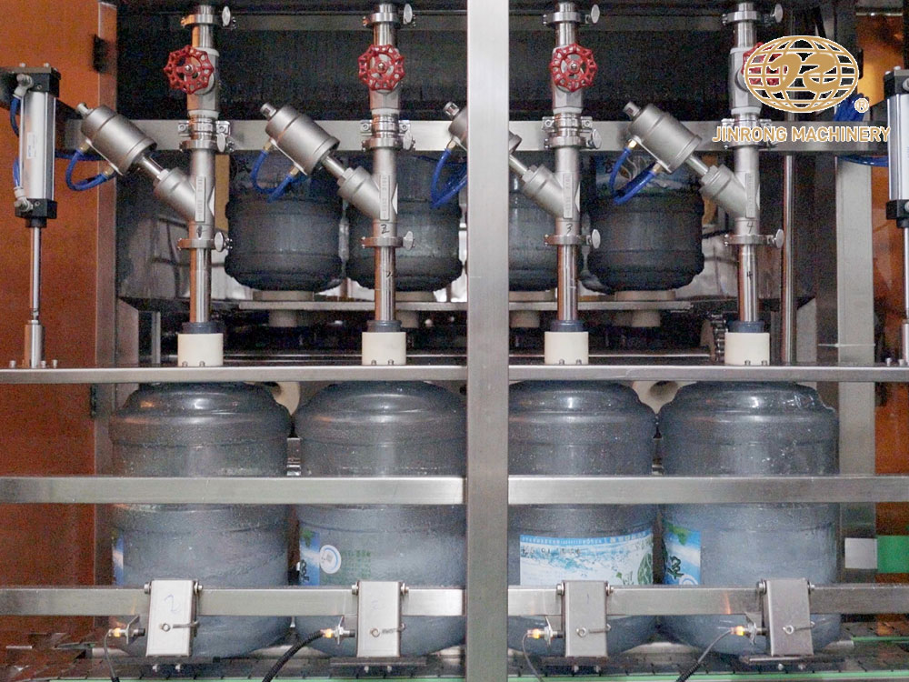 桶裝水灌裝線(xiàn)設(shè)備主要由清洗,灌裝,壓蓋三部分組成,主要應(yīng)用于3加侖和5加侖飲用水的一體化生產(chǎn)。大桶水灌裝生產(chǎn)線(xiàn)由拔蓋機(jī)、內(nèi)外刷桶機(jī)、灌裝機(jī)、壓蓋機(jī)、套標(biāo)機(jī)、貼標(biāo)機(jī)、噴碼機(jī)、套袋機(jī)等組成。