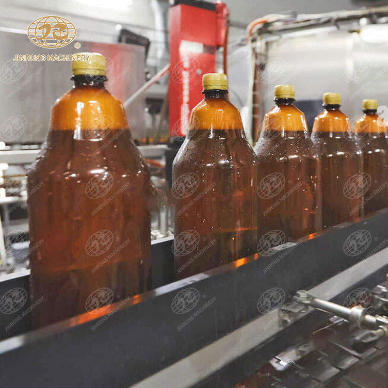 PET瓶啤酒灌裝生產(chǎn)線在灌裝前對PET瓶進(jìn)行沖洗,以去除瓶內(nèi)的雜質(zhì)和殘留物,確保啤酒的純凈度和口感。