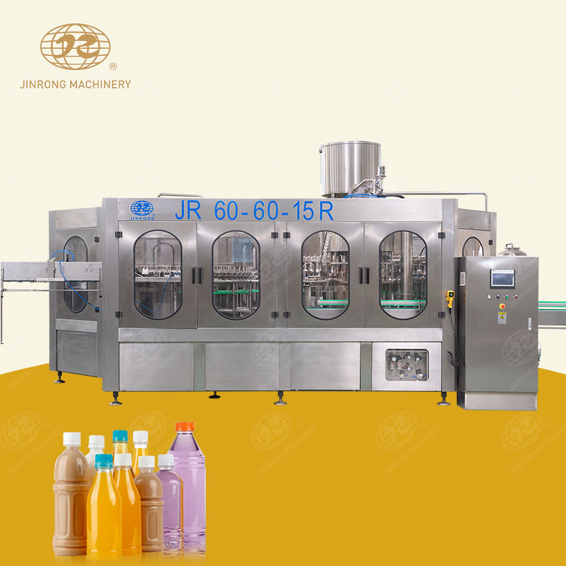 全自動果汁灌裝機主要用于果汁類、茶類、牛奶、運動飲料的灌裝作業,集沖洗、灌裝、封口三功能于一體。全自動果汁灌裝生產線灌裝容量為200ml-2000ml,果汁灌裝設備性能穩定、操作方便。經過簡單調整部分零部件,也可用于純凈水、飲用水、礦泉水的灌裝生產。