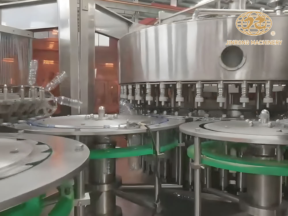 金榮機械主導產品有沖瓶灌裝旋蓋三合一機組、灌裝旋蓋二合一機組、灌裝封口二合一機組、全自動吹瓶機、加侖桶裝系列機組、水處理生產線、自動就地清洗系統、各種殺菌成套設備、沖瓶灌裝封口生產線、果汁果茶飲料成套設備等
